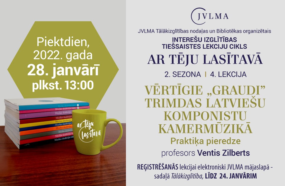 28. janvārī plkst. 13.00 platformā “Zoom” aicinām uz 2. sezonas 4. tiešsaistes cikla lekciju “Vērtīgie "graudi" trimdas latviešu komponistu kamermūzikā. /Praktiķa pieredze/” profesora Venta Zilberta vadībā.