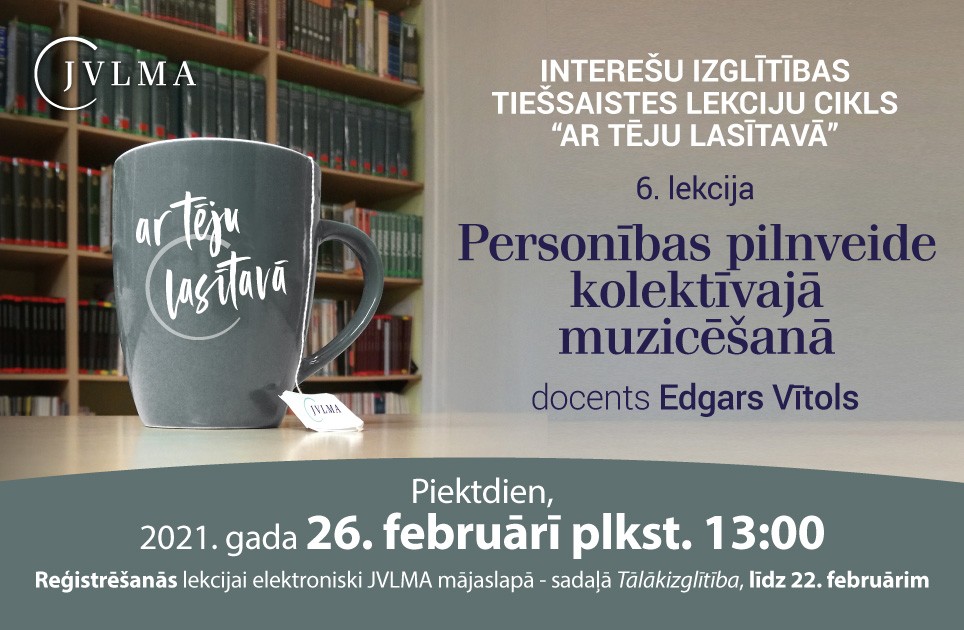 JVLMA Tālākizglītības nodaļa sadarbībā ar JVLMA Bibliotēku organizē Interešu izglītības tiešsaistes lekciju ciklu "Ar tēju lasītavā". Lekcijas notiek vienu reizi mēnesī – katra mēneša pēdējā piektdienā.