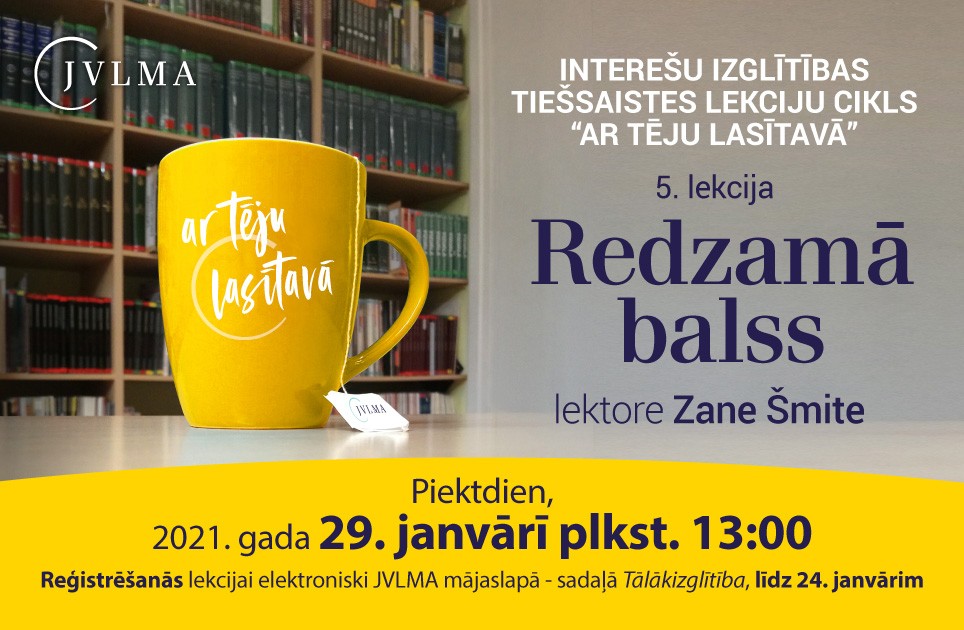 29. janvārī plkst. 13.00 platformā "Zoom" aicinām jau uz piekto tiešsaistes cikla lekciju "Redzamā balss" JVLMA lektores Zanes Šmites vadībā.